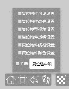 复位是将模型视图及构件操作进行复位操作。分别有:构件可见性、构件高亮、模型视角、构件透明、构件线框化、构件颜色这几个方面。如下图所示,用户点击